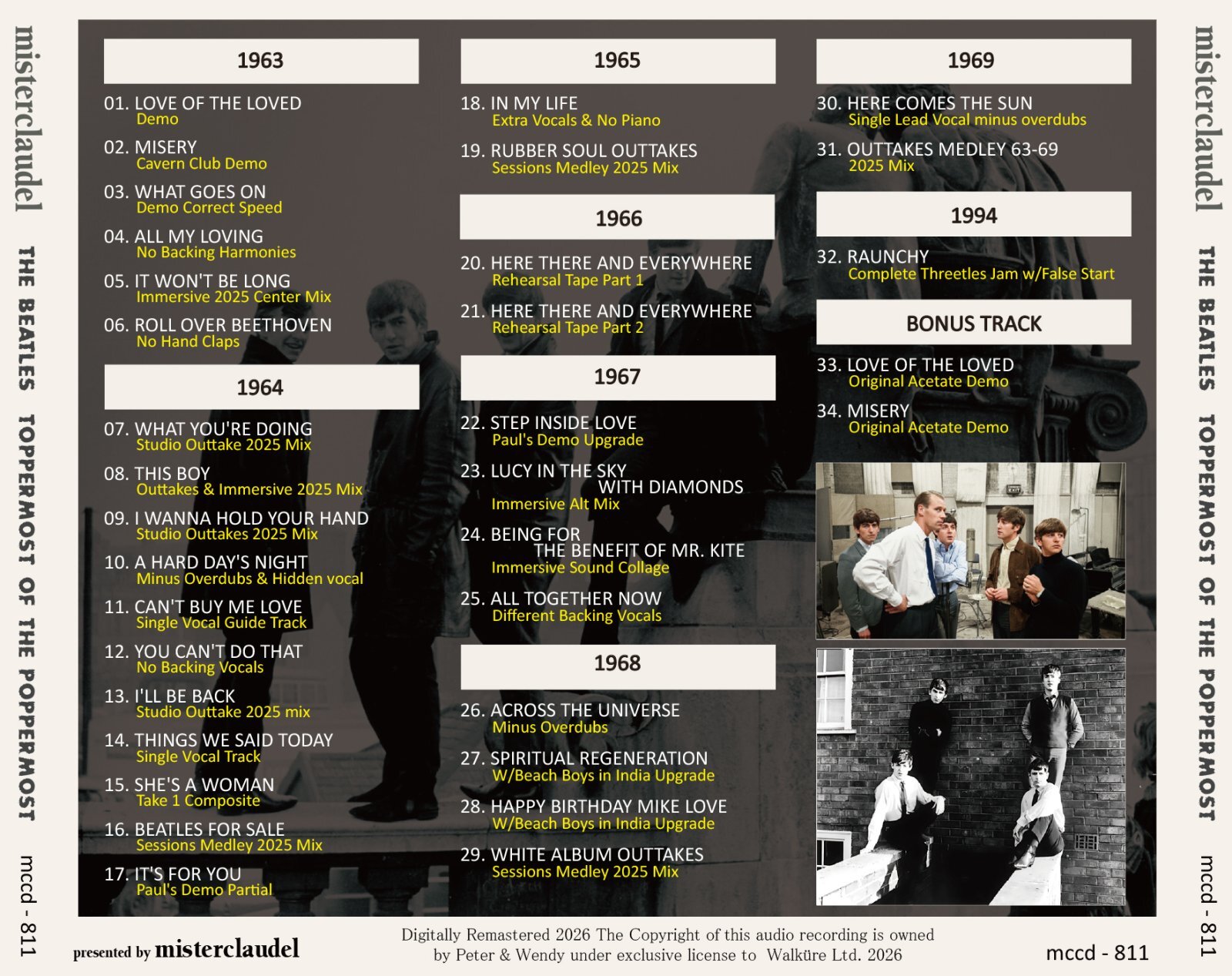 ビートルズが有名になる前、ラジオ番組「Top Of The Pops」をもじって「Toppermost Of The Poppermost」と常に自分たちを鼓舞していたと伝えられる。本作はそんな時代から1969年まで期間に渡るビートルズの初登場音源を含むスタジオ・レア・トラック集。「Love Of The Loved」と「Misery」は、ノイズレスのクリーン・バージョンで収録の他、ボーナストラックとしてオリジナルのアセテート音源も収録されている。その他のトラックも全て新音源である。美しいピクチャー・ディスク仕様の永久保存がっちりプレス盤。